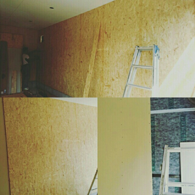 遮音シート施工後ボードにOSB板で仕上げています(^_^)b