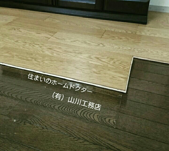 リフォーム工事をさせて頂いてます。バリアフリー対策されていないお住まいなので、既存のフロアの上に新しいフロアを敷き詰めて段差軽減(*^_^*)