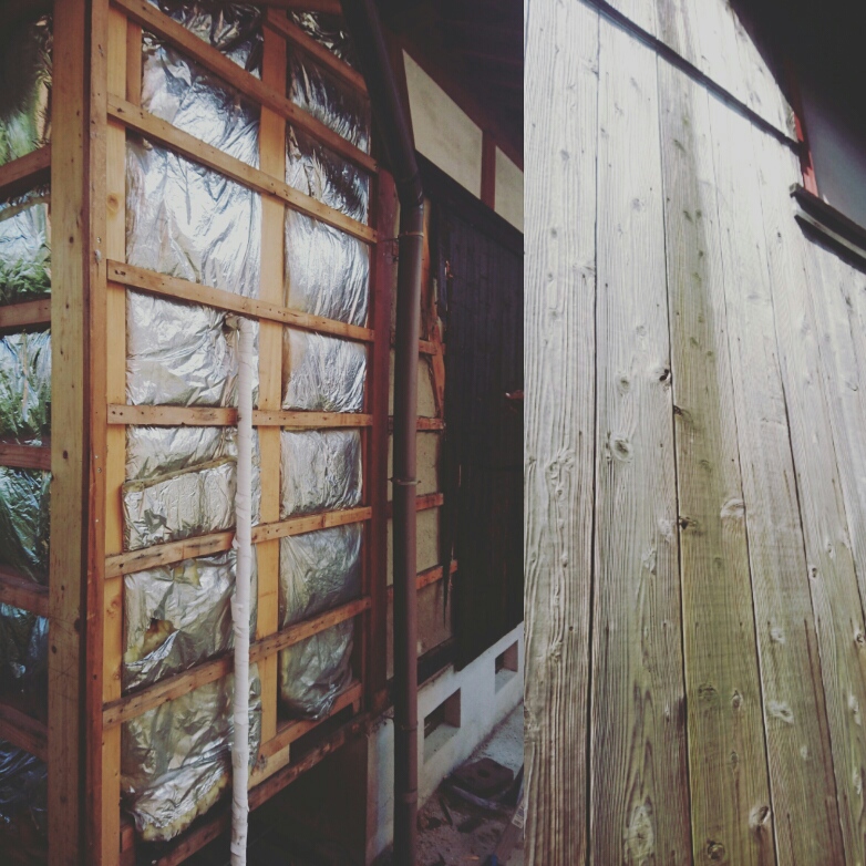 現在、焼き板の張り替え工事をさせて頂いています!