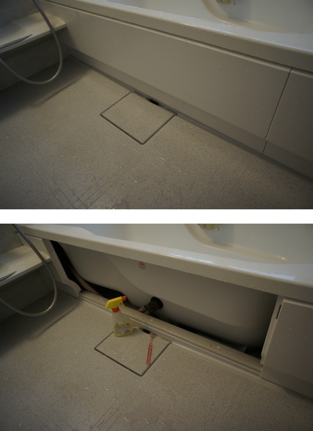 ハウステック製のユニットバスは、浴槽の横のパネル簡単にを外すことが出来ます。